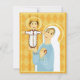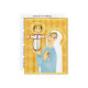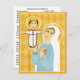 Ícone católico moderno Mary e Jesus nos mostra seus Mistérios do Filho Jesus da Rosária e suas escrituras correspondentes no cartão de oração de trás desenhado para visitantes pastorais para dar àqueles que eles ministram para