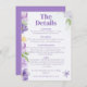 Compartilhe todos os detalhes maravilhosos com uma alegria floresce! Este Convite para Pessoas Púrpuras apresenta florais vibrantes em púrpuras e amarelos de sol suaves, em conjunto com uma fonte retrô que adiciona apenas o toque certo da personalidade. É uma nova introdução floral para o seu grande dia — elegante, um pouco atrevido, e totalmente você.