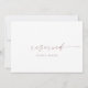 Este sinal de reserva de letra moderna em ouro rosa é perfeito para um casamento minimalista. O cartão é frente e verso (impressões em ambos os lados). O design simples de cor rosa ouro com rosas cor de blush apresenta tipografia de letras industriais únicas com estilo moderno boho. Personalizável em qualquer cor. Mantenha o design minimalista e elegante, como está, ou personalize-o adicionando seus próprios gráficos e ilustrações. Use esses cartões para reservar cadeiras ou mesas na cerimônia de casamento, recepção ou qualquer evento.