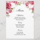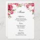O cartão de menu é mostrado com um impressão de arte de rosas rosa adoráveis acentuadas no topo da placa, mostradas no papel básico do cartão branco. Script e texto padrão em preto. Personalize os itens do menu clicando no botão personalizar edição, procure à direita e encontre as caixas apropriadas para alterar suas informações. Desejo-lhe os melhores votos para o seu Dia de Casamento.