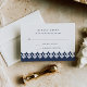 Projetado para coordenar com nossos convites de casamento e evento árabes, este cartão de resposta elegante em azul-marinho clássico e branco apresenta uma fronteira geométrica inferior inspirada por marroquinos. Adicione sua data RSVP e responda ao texto no marinho correspondente