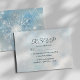 Esta elegante placa RSVP apresenta um sonhador design de inverno em azul empoeirado com flocos de neve de aquarela delicada e um motif cardíaco de corda prateada romântico. Fácil de personalizar com detalhes de hóspedes e preferências de refeições, isso complementa perfeitamente a sua suíte de casamento no inverno. Ideal para casamentos no inverno formais, confortáveis ou rústicos.