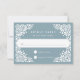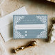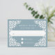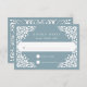 Projetado para coordenar com nossa coleção de casamento Beaux Arts, esta elegante placa RSVP apresenta papel picado fronteira branca moldando sua data de resposta desejada e o costume aceitar e recusar o texto, em um fundo turístico azul empoeirado.