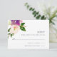 O moderno cartão RSVP floral combina com nossos convites para o casamento e evento Vibrant Bloom, e apresenta um buquê de rosas e peões aquosos em tons brilhantes de rosa-pincel, creme e roxo violeta, com folhas botânicas verdes. Personalize com sua data de RSVP desejada, bem como aceite e recuse o texto.