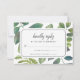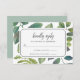 A placa Elegante de RSVP botânica apresenta folhas e folhagem verdes de aquarela em um estilo vintage, enquadrando sua data de RSVP desejada e aceitando e declinando o texto personalizado. Concebido para corresponder à nossa coleção de convites de Botânica.