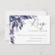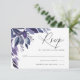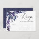 A placa Elegante de RSVP botânica apresenta folhas de cor d'água púrpura e azul e folhagem com caligrafia escura e letra de bloco. Personalize com sua data de RSVP desejada, bem como aceite e recuse o texto. Concebido para corresponder à nossa coleção de convites do Abundant Foliage Violet.