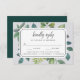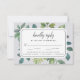 A placa Elegante de RSVP botânica apresenta folhas e folhagem verdes de aquarela em um estilo vintage, enquadrando sua data de RSVP desejada e aceitando e declinando o texto personalizado. Adicione suas seleções de entrada abaixo para permitir que os convidados indiquem sua escolha de refeição antes do tempo. Cartões de cinza suaves revertem para verde florestal rico. Concebido para corresponder à nossa coleção de convites de Botânica.