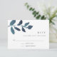 Projetado para coordenar com a nossa coleção de casamento Botânico Pressionado, este cartão RSVP branco e azul-lacrimogêneo apresenta um primavera solteiro de folhagem botânica vírica e azul-aquática ultramarina, ultrapassando a data de resposta desejada e aceitando e declinando a redação.