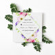 RSVP de Casamento em um tema floral com bonito cores elegantes e suaves de RSVP floral roxo, rosa, branco e verde, Simples mas elegante.
