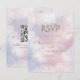 Placa RSVP Celestial Rosa com Código QR Opcional | Constelações de Aquarela e Resposta de Estrelas Conclua sua suíte com esta placa de RSVP celestial cor-de-rosa, com nuvens de aquarelas, constelações e estrelas brilhantes. Ideal para casamentos celestiais, românticos ou modernos, esta modelo totalmente personalizável permite editar detalhes de RSVP, prazos e seleções de refeições.
