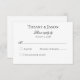 A placa RSVP inclui texto de script e um fundo branco sólido. A frente tem uma fonte preta, enquanto a parte traseira é vazio.
