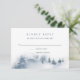 Projetado para coordenar com nossa coleção de casamento de Snowbound, esta elegante placa RSVP de inverno apresenta uma cena de floresta de neve com pinheiros a aquarela em azul e cinza. Personalize com a data de resposta desejada e aceite e recuse a redação em caracteres azuis clássicos de cinza.