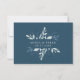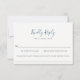 Cartões RSVP azuis de casamento simples, com marinho azul, com fenda de sotaque de folhagem e nota de alergia de comida. Personalize o estilo, a cor e o tamanho da fonte do texto.