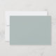 Romântica mas contemporânea, nossos elegantes cartões RSVP de casamento são uma bela maneira de coletar respostas de seus convidados. As cinzas azuis enfumaçados escuras apresentam um spray de flores de anêmona de cor creme e ramificações verdes de eucalipto em aquarelas moles. Personalize com suas seleções de entrada para permitir que os convidados indiquem sua preferência de refeição antecipadamente. A placa se reverte para o verde empoeirado. Este cartão de resposta corresponde à nossa coleção de convites de casamento Anemone e Eucalyptus.