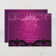Este RSVP de 16 anos, personalizável e elegante, apresenta espirais cor-de-rosa e tiara em um fundo preto e rosa damask. Personalize-o adicionando seus detalhes na cor e na fonte de sua escolha!