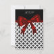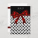 Fleur De Lis preto e branco com fita vermelha brilhante e placa RSVP de arco. RSVP de Casamento Negro Vermelho. Cartões Fleur de Lis RSVP.
