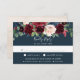 Projetado para coordenar com a nossa coleção de casamentos Radiant Bloom, este magro cartão RSVP floral com opções de refeições apresenta um spray de flores a aquarelas em burgundy marsala, cor-de-rosa e azul-marinho, ultrapassando a data de resposta desejada e aceitando e declinando a redação. Um rico fundo azul marinho adiciona uma elegância dramática. Adicione suas opções de refeições ou insira seleções na parte inferior.