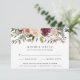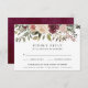 Projetado para coordenar com a nossa coleção de casamentos florais de cor d'água do Rustic Bloom, este elegante cartão RSVP botânico apresenta um spray de mãe pintada a aquarelas em tons ricos de outono de marsala, ameixa burgundy, rosa-pincel e creme, ultrapassando a data de resposta desejada e aceitando e declinando a redação. Um cartão de resposta chic e elegante para o outono ou casamentos no inverno. Permitir que os hóspedes indiquem a sua preferência total antecipadamente com um campo personalizado para as suas opções de refeições.