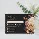 Assegure um processo de resposta uniforme e na moda com a placa RSVP de Script Elegante com opções de refeições da "Fall Black Terracotta Floral and Leaves Wedding Invitation Collection." Estes cartões lindamente projetados exibem as elegantes folhas de outono e o padrão floral, fornecendo uma aparência coesa e elegante para a sua papelaria de casamento. Facilite a resposta dos seus convidados, mantendo uma estética sofisticada e coordenada. Personalize agora para completar seus convites de casamento no outono, no templo perfeito!