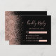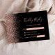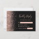 A borda esquerda desta elegante placa de caixa RSVP de casamento moderna apresenta uma borda falsa rosa dourada. O texto personalizável combina letra rosa pálida, letra copperplate e letra itálico num fundo preto. O verso apresenta um design preto e rosa dourado correspondente.