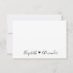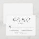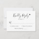 Cartões RSVP de casamento preto e branco, de caligrafia moderna elegante, apresentam um design de tipografia na moda com roteiro de caligrafia, noiva do lado reverso e nome do noivo com sotaque amoroso romântico. Texto personalizado minimalista que pode ser personalizado com a data de vencimento do RSVP. O design inclui uma linha para nome(s) de convidado, participação de evento e o número total de convidados presentes.