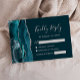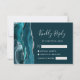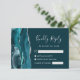 A borda esquerda deste elegante cartão de cercado RSVP de casamento moderno apresenta uma borda azul-lacrimejada com falso brilho prateado. O título "Resposta gentil" aparece em script de escrita manual, com texto personalizável abaixo na fonte da placa de cinza prateada em um plano de fundo negro. O verso apresenta um design de cor azul e agata prateado correspondentes.