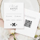 Texto personalizado com qualquer coisa para o seu evento, exclua a caligrafia "gentilmente" se desejar no editor de cheio; opções de refeição incluídas. Abra o editor de cheio em um tablet ou pc para adicionar ou excluir elementos para refeições. Opção de código QR no verso para o registro ou resposta online rsvp.