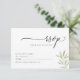 Cartão RSVP de Casamento Elegante, com um delicado galho verde e uma elegante tipografia de roteiro.