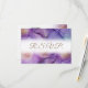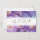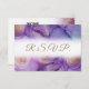 Para tornar as coisas muito fáceis para os seus convidados, esta elegante carta RSVP de casamento tem um código QR nas costas. Basta adicionar o URL do seu casamento ao modelo! Este cartão combina com os itens do Rustic Floral Wedding Suite. A arte original foi feita com tintas alcoólicas em cores de tom de joia de ametista roxo, rosado de safira e latão. Cartão RSVP de Casamento de Código QR para Flores Roxas Elegantes.