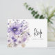 Assegure um processo de resposta sem problemas para o seu casamento com nossa RSVP de Casamento Floral Purple Floral. Apresentando elegantes florais roxos de aquarela, este cartão RSVP complementa qualquer casamento de jardim, rústico ou com temas elegantes. O delicado design floral acrescenta um toque romântico, enquanto o estoque de cartolina de alta qualidade garante um aspecto e um sentimento especiais. Personalize o cartão para solicitar respostas de convidado, preferências de refeição ou outros detalhes importantes. Com o estilo sofisticado e o layout funcional, a Placa RSVP de Casamento Floral Purple Floral de Aquarela é a adição perfeita à sua suíte de papelaria de casamento.