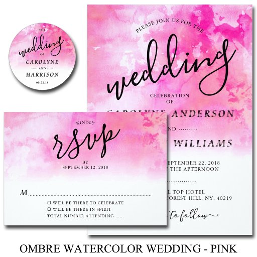 Placa RSVP de Casamento de Cores d'Água do Ombre -