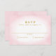 Esta placa de RSVP de casamento moderna apresenta uma lavagem de aquarela cor rosa macia nas bordas e tipo de ouro clássico.