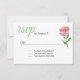 Bonito cartão de resposta de casamento feito em branco, com gráficos de uma flor rosa de flor de aquarela. A parte de trás é feita em verde sólido. Personalize todos os campos de texto personalizados para o seu casamento. Os produtos correspondentes estão disponíveis.