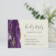 A borda esquerda deste elegante cartão de cercado RSVP de casamento moderno apresenta uma borda de agitação de cor d'água roxa, aparada com falso brilho dourado. O título "Resposta Rápida" aparece em script de escrita manual, com texto personalizável abaixo na fonte da placa da cinza de carvão em um fundo de marfim. O verso apresenta um design de agate roxo e dourado correspondente.