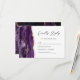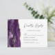 A borda esquerda deste elegante cartão de cercado RSVP de casamento moderno apresenta uma borda de agitação de cor d'água roxa, aparada com falso brilho dourado. O título "Resposta Rápida" aparece no script de caligrafia moderno, com texto personalizável abaixo na fonte serif de cinzas de carvão em fundo branco. O verso apresenta um design de agate roxo e dourado correspondente.