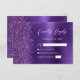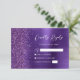 A borda esquerda deste elegante cartão de cercado RSVP de casamento moderno apresenta uma borda de falso roxo. O título "Resposta Rápida" aparece em um script de caligrafia moderno, com texto personalizável abaixo em fontes brancas sans serif em um fundo de metal escovado roxo e falso. O verso apresenta um design de metal escovado roxo e brilho correspondentes.