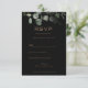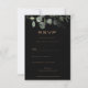 Este cartão de casamento de eucalipto mínimo formal preto é perfeito para um casamento rústico. O design apresenta uma folhagem verde de eucalipto com aquarela em fundo preto.