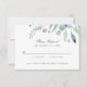 Cartões de RSVP de casamento impressos por barato com cores aquáticas simples. Personalize a design com suas informações de RSVP de casamento. Use as ferramentas de design para personalizar o texto, escolha qualquer cor de fundo e edite as fontes e cores para criar seu design de cartão de resposta de casamento exclusivo. O verso apresenta um fundo azul de marinho ou usa o espaço para adicionar texto ou fotos, se necessário. Esta bela design botânica moderna é perfeita para qualquer estação.