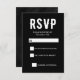 Cartão RSVP de casamento gótico preto com um fundo preto escovado e letras góticas ou assustadoras para um casamento "até a morte nos separarem". Verifique a coleção abaixo para encontrar produtos correspondentes para a recepção e a parte.