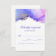 Um cartão RSVP de casamento moderno lavado a tinta com rosa, roxo e prata. Este elegante cartão de cervejaria de casamento apresenta um laço artístico de tintas coloridas em roxo e azul; acentuado com prata. Adicione facilmente sua data de RSVP ao modelo usando a ferramenta de personalização do Zazzle. Cartão RSVP de Casamento Roxo.
