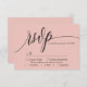 Deixe seu amor florescer com um toque de simplicidade elegante. Esta placa RSVP cor-de-rosa macia apresenta uma fonte moderna de escrita de caligrafia, acrescentando um toque de graça de eterno à sua papelaria de casamento. O design minimalista mantém o foco nos detalhes de RSVP, garantindo uma resposta clara e na moda dos seus convidados. Complementando perfeitamente o seu tema de casamento minimalista, esta versátil carta RSVP se mistura facilmente com estética romântica, chica, moderna ou sofisticada. Personalize-o com seus nomes e detalhes de casamento para criar um pacote de resposta coesa para seu dia especial.