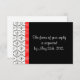 Damasco preto em um fundo branco, e uma faixa vermelha brilhante que se parece com uma fita fazem uma fronteira incrível para este cartão de resposta do casamento. A parte branca facilita a marcação do seu entrevistado. Este cartão combina com o Monograma do Damasco Vermelho Branco Negro na minha loja.