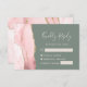 A borda esquerda desta elegante placa de caixa RSVP de casamento moderna apresenta uma borda cor-d-água rosa pincelada, aparada com brilho dourado falso. O título "Responder gentilmente" aparece em script de escrita manual, com texto personalizável abaixo na letra de impressão em branco suave em um plano de fundo verde sábio. O verso apresenta um design dourado e uma pincelada correspondente.