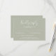 A placa de gabinete RSVP de convite de casamento apresenta um design tipográfico elegante, moderno e limpo com esquema de cor verde de sábio. Este cartão de resposta está pronto para ser personalizado com os detalhes do seu dia especial. Por favor, navegue no pacote de casamento mínimo Elegante verde Sage para obter itens de papelaria correspondentes.