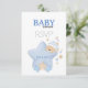 Urso de pelúcia Adorável com um boné adormecido adormecido numa estrela azul. Design bonito e gentil com estrelas e pontos em azul, bege e creme. Personalize alterando o texto ou personalize ainda mais para adicionar seu próprio toque.