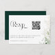 Casamento de Folhagem Florestal Selvagem, código QR rsvp. Verde impermeável e ouro com cor verde esmeralda coordenadora.