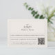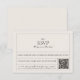 Este simples design combina perfeitamente o encanto da safra com a conveniência moderna. A inclusão de um código QR simplifica o processo de RSVP, permitindo que seus convidados respondam sem esforço. O clássico design complementa uma variedade de temas de casamento, oferecendo um toque de nostalgia com eficiência contemporânea. Personalize esta placa para tornar seu processo de RSVP na moda e sem complicações.