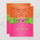 Este cartão rsvp de casamento floral cor-de-rosa-quente, verde limão e laranja tropical tem flores cor-de-rosa e laranja fuchsia com uma fita de verde limão IMPRESSA e um arco que tem um par de joia de diamante IMPRESSO e brilho FAUX rosa uniram-se a ele que corresponde ao convite de casamento mostrado abaixo. Perfeito para o romântico primavera, verão, outono, inverno ou casamento de destino. A escolha do papel é personalizável. Sugiro papel básico ou metálico para o gelo desta design. Se você precisar de outros itens correspondentes, envie um email para niteowlstudio@gmail.com. Os itens correspondentes são mostrados abaixo.