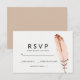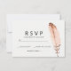 Um cartão RSVP com imagem de ilustração de pena, compatível tanto para o exterior (jardim) quanto para o casamento ou a festa de noivado moderna interna.