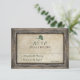 Este cartão de resposta RSVP de casamento apressado apresenta um quadro de madeira marrom em volta do fundo do papel de pergaminho. Uma isca de pesca verde pode ser encontrada no topo desta papelaria e fontes em preto e verde em fontes divertidas e estilhaças por toda parte. Este é um desportista excelente ou um cartão de resposta ao casamento de entusiastas da pesca que tem um convite coordenado na nossa frente de batalha.